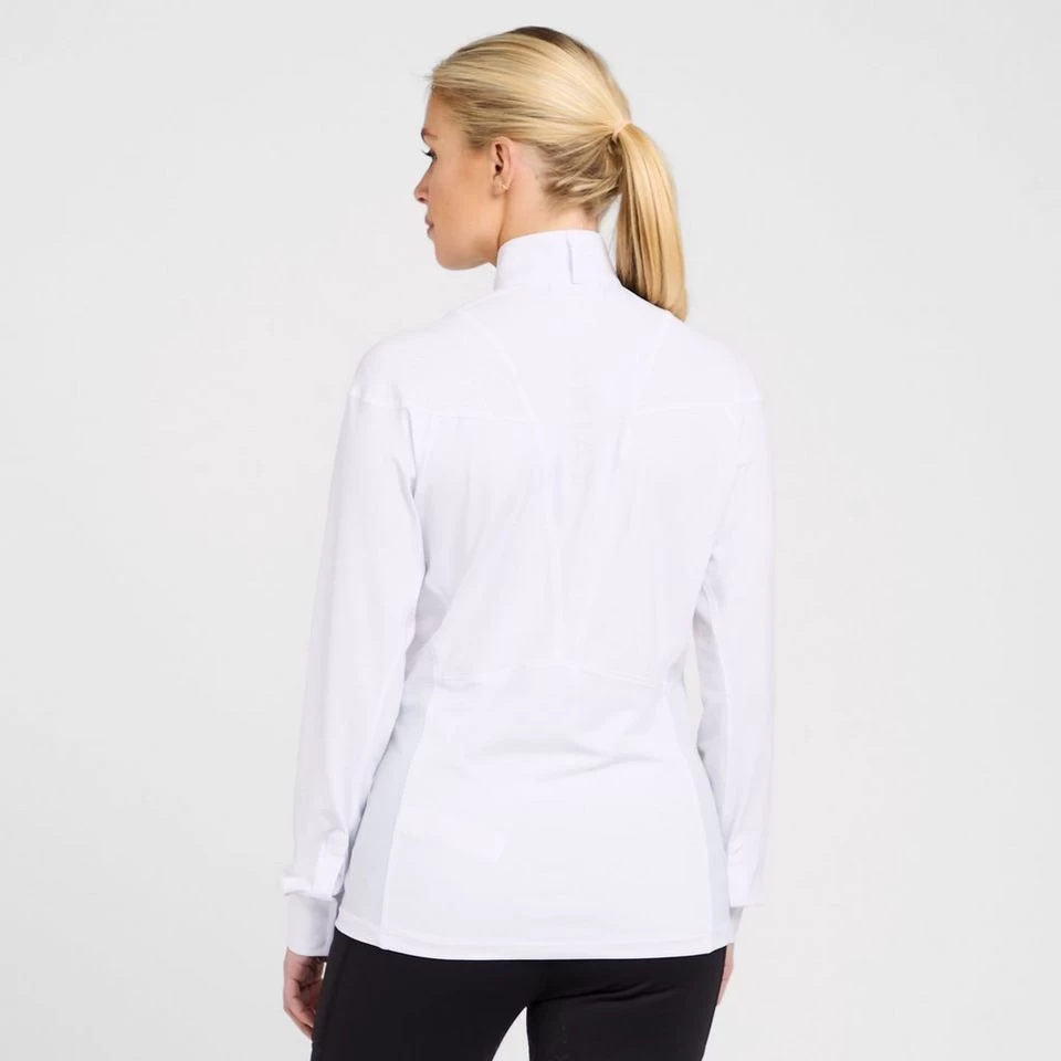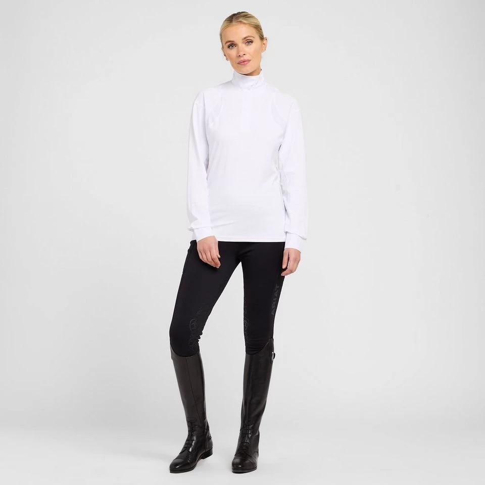 The Women’s Auburn Show Shirt features perforated panels which help circulate cool air during intense activity, as well as an anti-odour bacterial finish for maximum freshness during intense activity. The woven wrap show collar and cuffs are paired with a raglan cut for a flattering fit over breeches or riding tights.