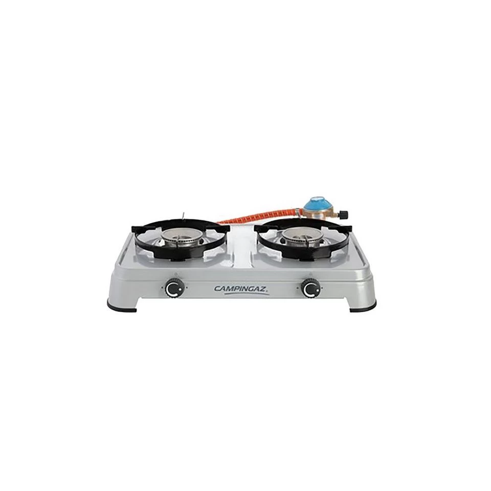 The compact cooker uses widely available CV 470+ cartridges and comes with two independently adjustable burners to give you full control when cooking up a treat by the tent.