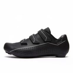 A breathable road shoe with Velcro closure and a three bolt pattern on the sole for easy pedal compatibility.