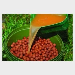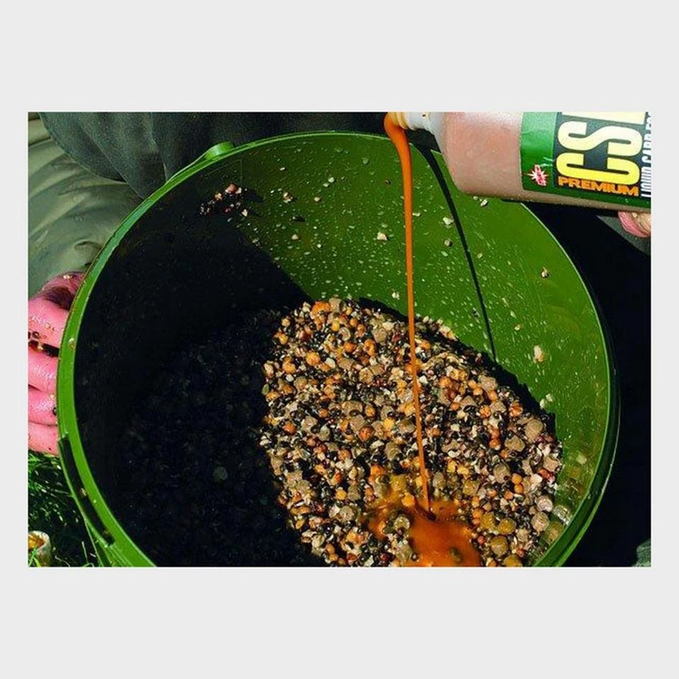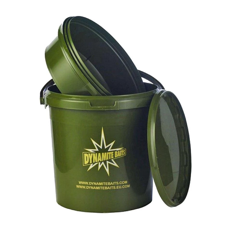 A 10 litre green Carp bucket with a separate insert for PVA mesh and baiting tools etc.