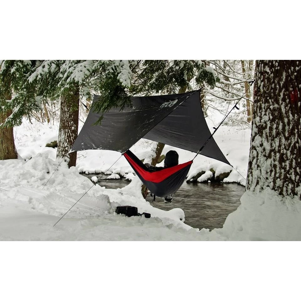 The ENO ProFly Rain Tarp’s six guy points create a streamlined shape that’s ideal for weathering sudden downpours, or building a water-front basecamp.