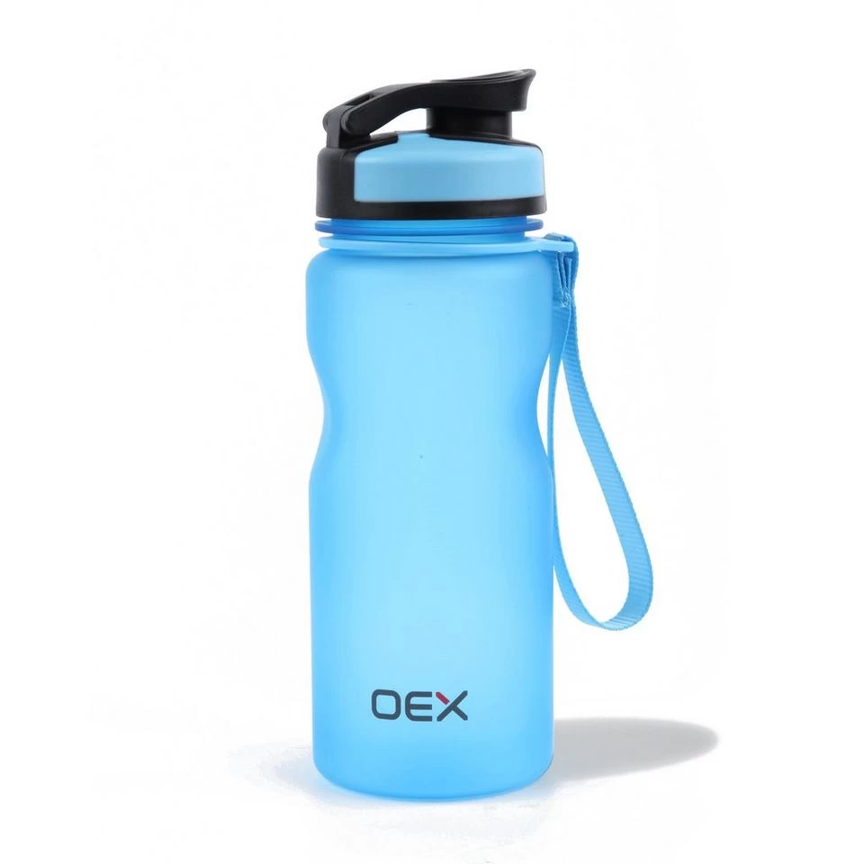 A 600ml drinking bottle with frosted light blue plastic, a removable carry loop and a secure flip lid that stays out of your way as you drink.