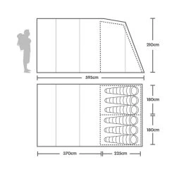 - Built dimensions: 595cm (L) x 380cm (W) x 210cm (H)