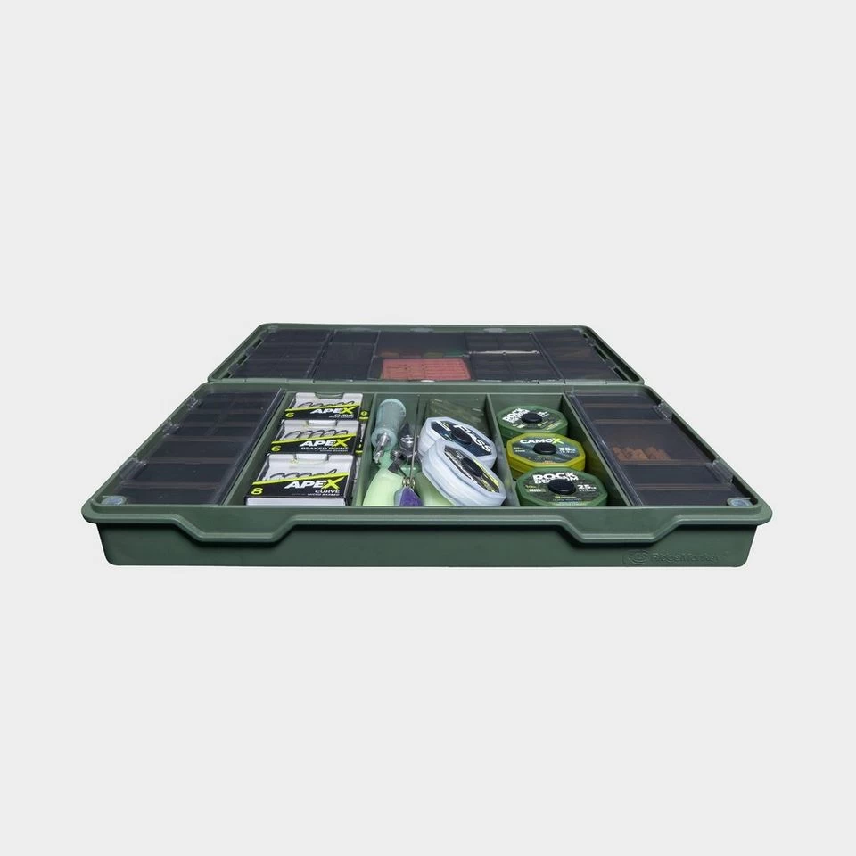 The Armoury Lite Tackle Box has 57 storage compartments for lightweight organization of terminal tackle. It’s weather-resistant, robust, and compatible with RidgeMonkey Ruggage.