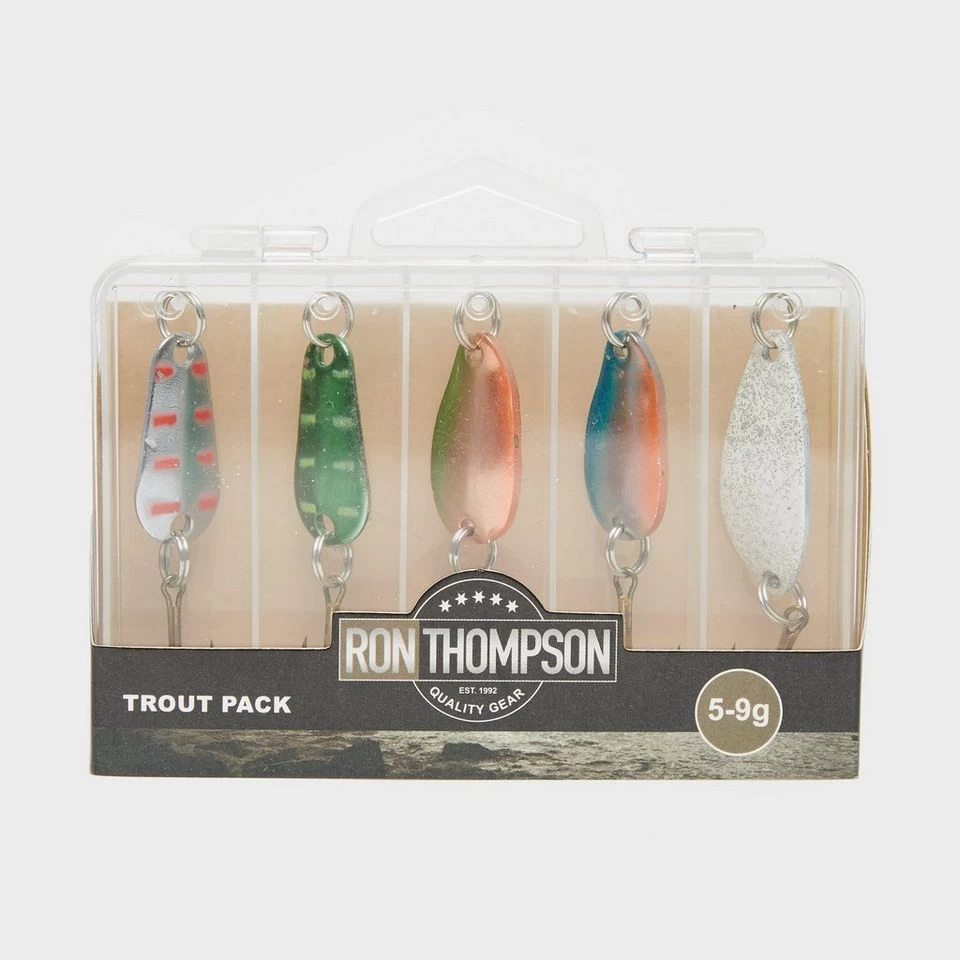 A box of five trout lures in tried and tested colours and ranging in weight from 5-9g.