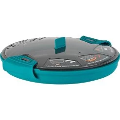 The 2.8 litre X-Pot’s silicone walls are constructed from 5 folding segments which means increased expanded height while still packing down to only 45mm. The lid features a built-in strainer and can be locked to the pot with the folding handles for transport.