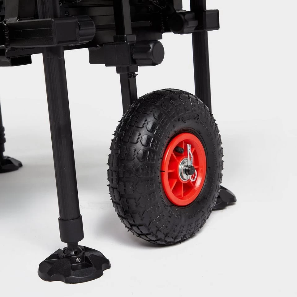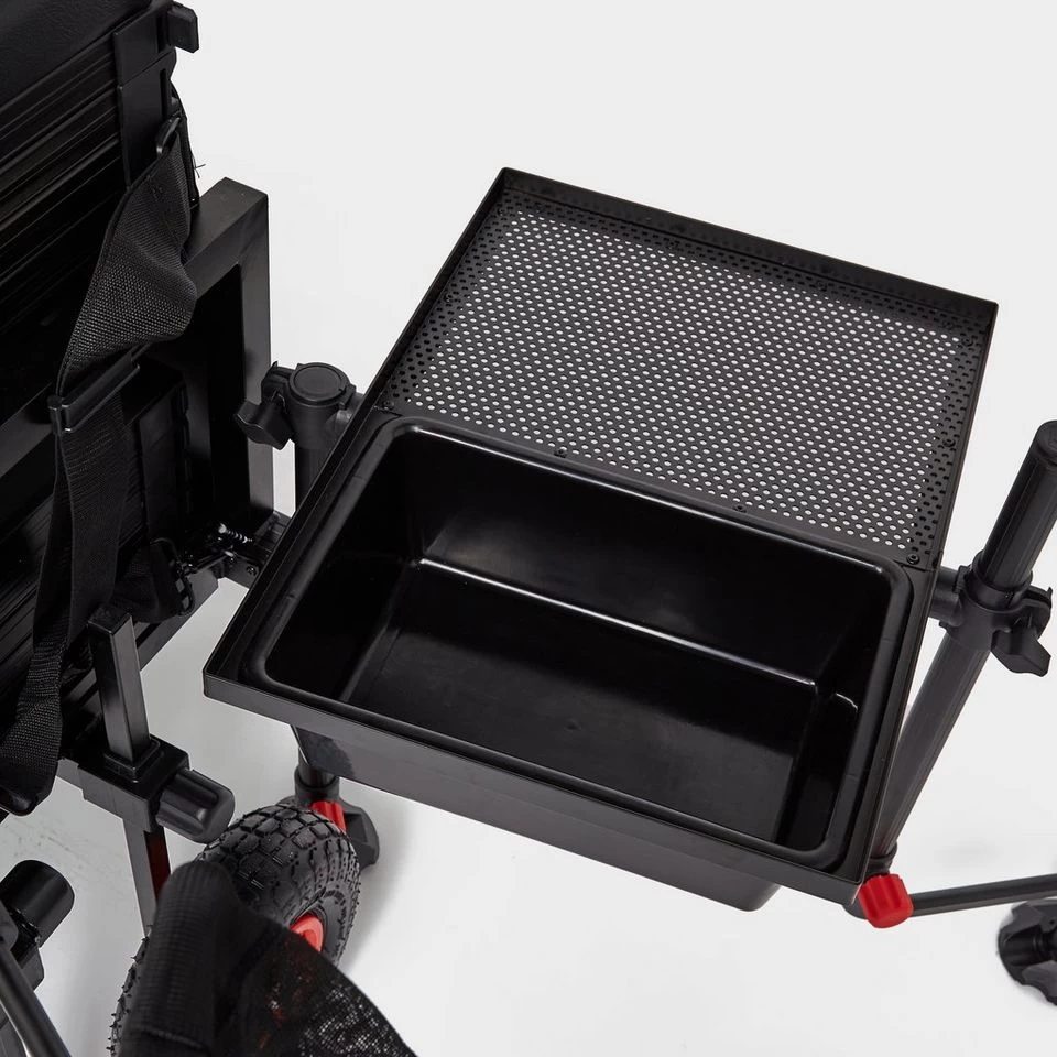 The well-designed seatbox from Westlake features 30mm size legs, of which four are extendable to suit the terrain. The well-padded seat cushion has a pole slot and the draw system houses a one side draw and two front opening draws for smaller tackle items like hooks. The package includes additional extras like a side tray with groundbait bowl, short arm and pole sock, a quick release keepnet arm, single off-set support leg for when fishing on tightly pegged platforms and a wheel kit and handle.
