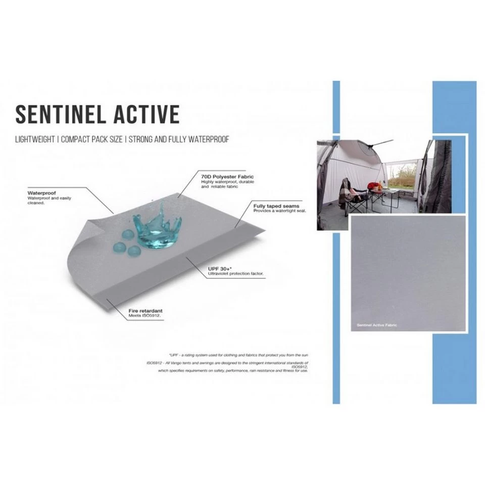 This fixed style awning needs the support of your campervan, so cannot be left free standing but the multiple doors provide flexibility along with the removable groundsheet.