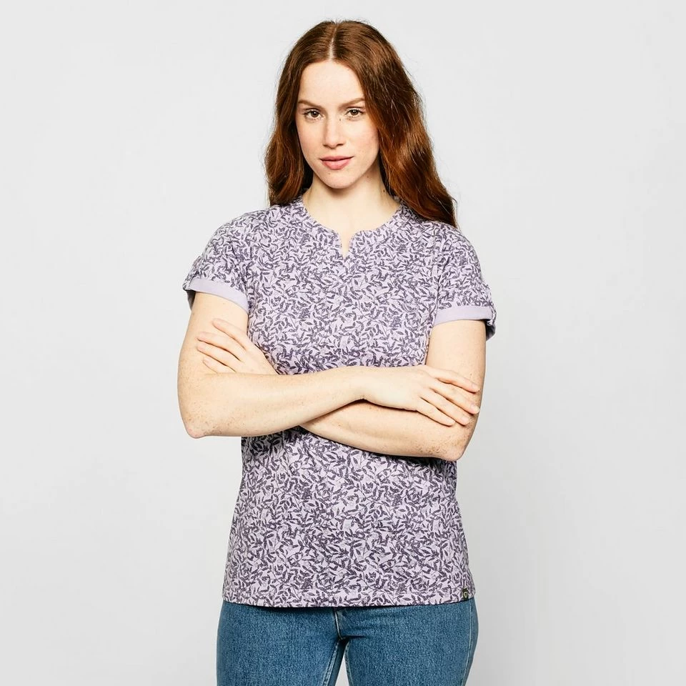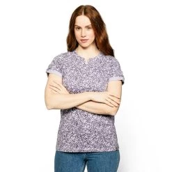 Rolled sleeves make this summery floral top niche! A lightweight, lilac and lavender shade cotton tee for the summer holiday!