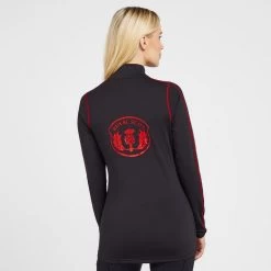 The women’s long sleeve base layer features contrast flatlock seams with seamless shoulders to reduce abrasion while you move, as well as a 1/2 zip to improve ventilation when working up a sweat.
